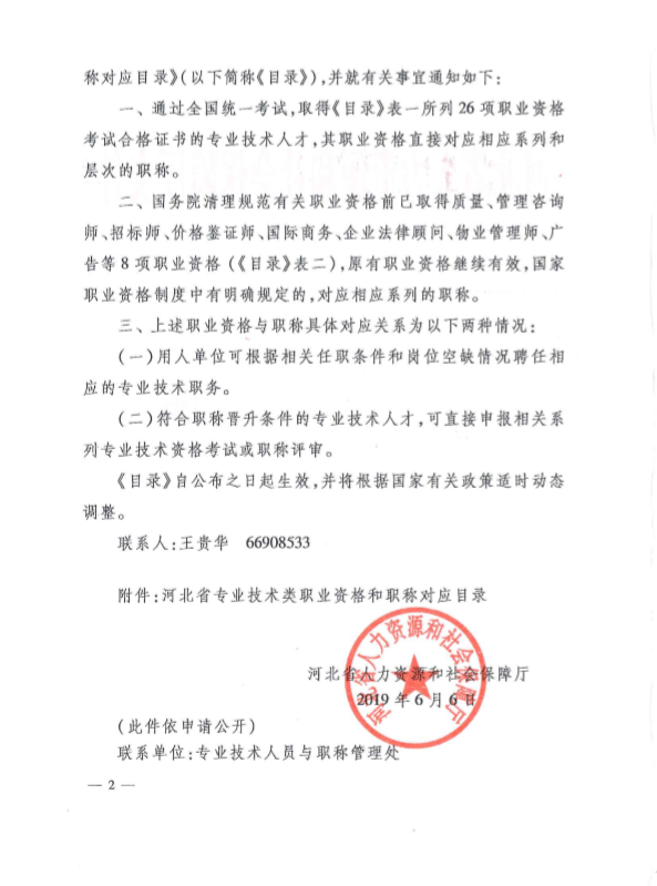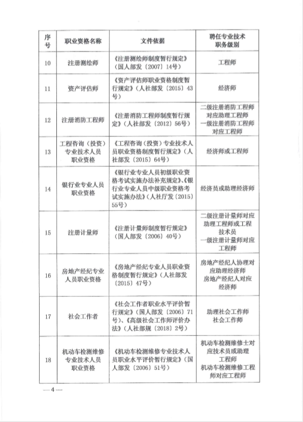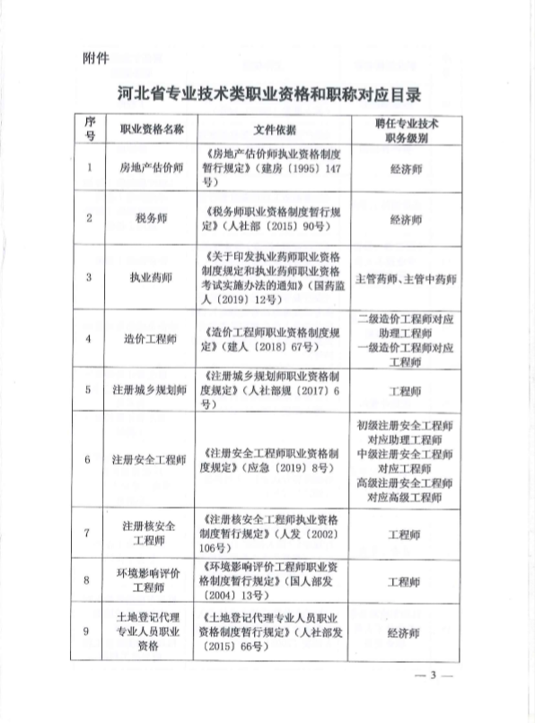 河北省专业技术类职业资格和职称对应目录